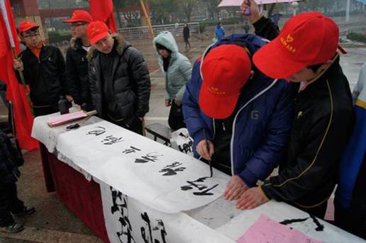 启动仪式后,beat365青年志愿者在活动广场进行了万人签名活动和便民帮扶活动。计算机系的志愿者运用所学专业为群众进行了家电维护,美术系的志愿者的免费书画更是受到了市民的欢迎。