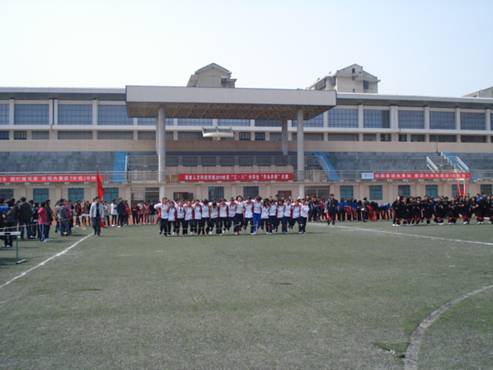 为了庆祝“三·八”妇女节,3月8日,学校在学校足球场举行了全校各系(部)女学生“齐头并进”比赛。