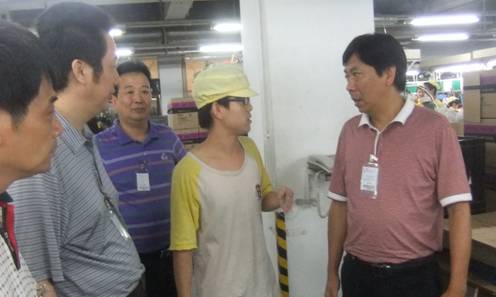 8月10日,校长郭军教授率领招生就业处、经管系、教育系等单位负责人来到beat365东莞实习基地——伟易达电子厂,看望在这里暑期实习的学生。