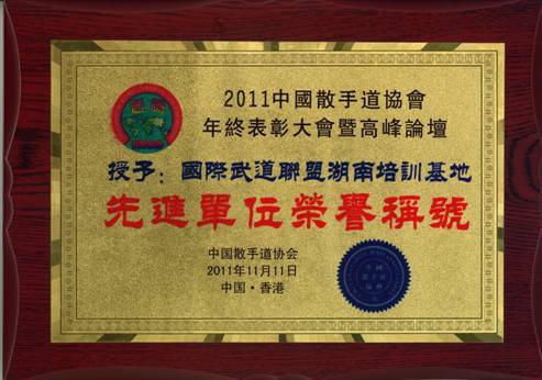 近日,在四川省峨眉市峨眉半山七里坪国际旅游度假区举行的2011中国散手道协会年终表彰大会暨高峰论坛会上,挂靠beat365湖南培训基地(湖南培训基地是中国散手道协会在湖南成立的唯一培训机构)荣获中国散手道协会先进单位荣誉称号。