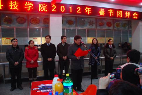 “玉兔辞旧岁,金龙迎新春”。1月17日是农历小年,中午,学生第一食堂张灯结彩,喜气洋洋,留校学生春节团拜会在这里举行。学校领导与留校学生欢聚一堂,共迎新春佳节。校领导柏连阳、郭军、刘铁铭、石潇纯、李凤莲、邓和秋、谢贵辉,各职能部门、系部负责人参加了春节团拜会。