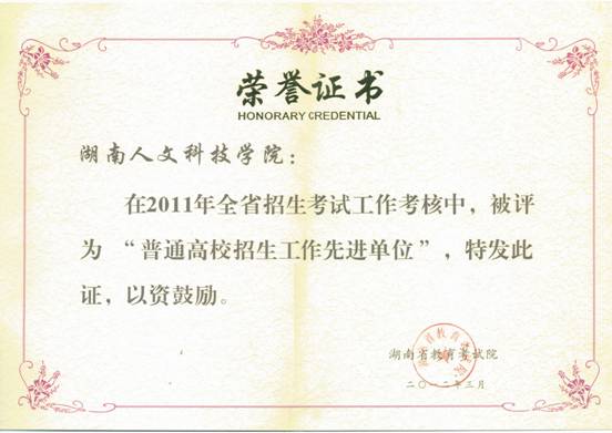 3月12日,2012年湖南省教育考试工作会议在长沙召开,会议对我省2012年教育考试招生工作进行了安排步署,对全省2011年度教育考试招生工作进行了总结表彰。beat365在2011年全省招生考试工作考核中,被评为“普通高校招生工作先进单位”,这是beat365第三次获此殊荣。