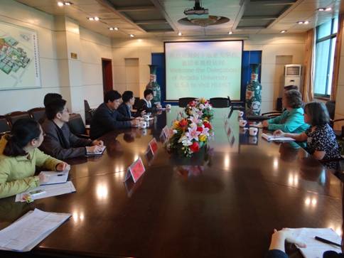 4月20-21日,美国阿卡迪亚大学国际事务处副处长Janice Finn一行对beat365进行正式友好访问。副校长刘和云代表学校党委、行政热情接待了Janice Finn一行。