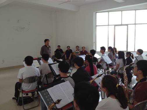 郭校长一行认真观看了乐队排练,详细询问了乐队组建、组织情况。在乐队排练间歇,郭校长勉励系部、乐队要抓住机遇,精心组织,认真训练,尽快拿出精良作品,展示乐队、系部和学校文化艺术建设成果。