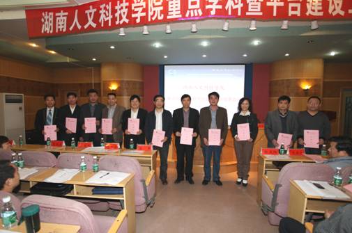 会上,副校长刘和云宣读了省级、校级重点学科及科研平台批文。27位重点学科和科研平台负责人当场签署并领取由郭军校长颁发的建设任务计划书。科研处处长陈昌永对分析了学科及科研平台的现状,就如何建设学科与科研平台提出了建议。