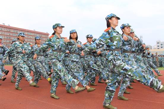 随后,全体受训学生进行了分列式表演。在《解放军进行曲》雄壮的旋律中,60个新生方队依次通过检阅台。威武的军姿、矫健的步伐、嘹亮的口号展现出新一代学子充满活力的青春风采和艰苦磨炼的军训成果。队伍中还有一道靓丽的风景,他们是从4000余名新生中优选而出的70名同学组建的特殊礼仪军训队伍,他们那充满中国传统元素的服装和典雅大方的举止不由使人为之喝彩。