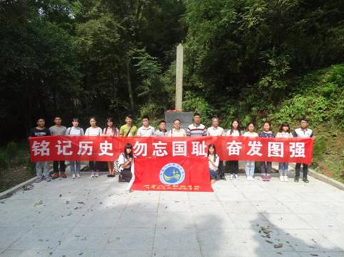 师生代表一行首先来到新化县洋溪万人坑,重温抗战历史。洋溪万人坑位于龙潭村文昌阁边,远看像一座圆形黄土堆,也叫做“万人堆”,据有关统计资料,日寇在洋溪地区屠杀中国军民达3461人。日寇退出后,活着的人们将所有尸体集中在一大坑而埋之,并因所葬人多而称为“万人坑”。解放后,新化人民又用红砖水泥将土堆圈成一个大坟堆,墓冢封土堆高两米,底径12米,并立碑记事,提醒国人勿忘国耻。随后,师生代表来到新化狮子山公园内的抗敌伤亡荣誉将士公墓,深切缅怀革命先烈。