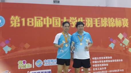 8月5日-10日,“第18届中国大学生羽毛球锦标赛”在北京工业大学举行。来自全国98所高校1080名运动员参加了比赛,beat365选送了14名学生运动员参加了学生甲组比赛,校长刘和云、副校长刘铁铭参加了“校长杯”的比赛。