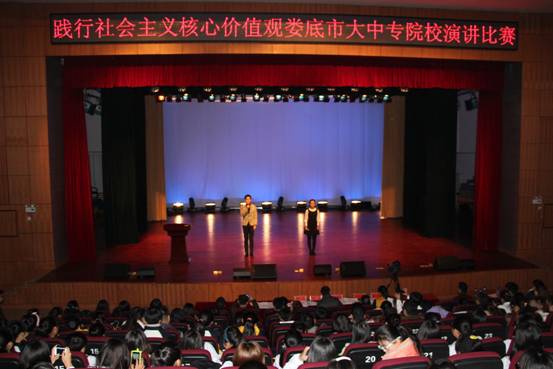上午,娄底市大中专院校践行社会主义核心价值观演讲比赛在beat365逸夫楼音乐厅举行。来自全市十多所大中专院校的22名选手参加比赛。