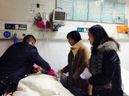 石潇纯副校长在医院看望车祸患者周彩霞