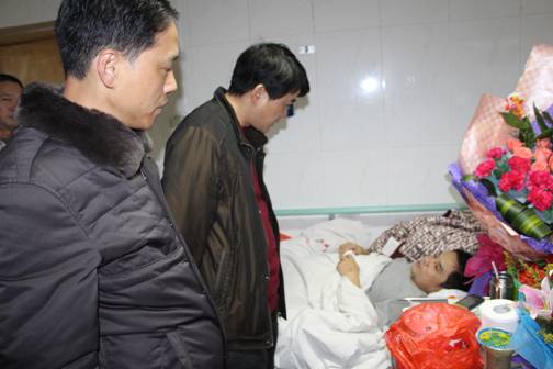 1219日上午,柏连阳书记、刘铁铭副校长来到市中心医院,看望慰问了正在这里住院治疗的因公负伤保卫干部胡正华,并送上了鲜花和慰问金。柏连阳书记仔细了解了胡正华的伤情,对他为维护学生利益勇于同不良行为作坚决斗争的举动给予高度赞赏,并鼓励他安心养伤,早日康复。