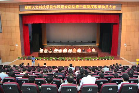 5月21日下午,beat365在音乐厅召开了作风建设活动暨干部制度改革动员大会。校领导,正科以上实职干部和部分教授、博士、副教授近400人参加了会议。党委书记柏连阳主持会议。