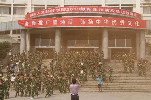 2013级新生消防应急疏散演练现场