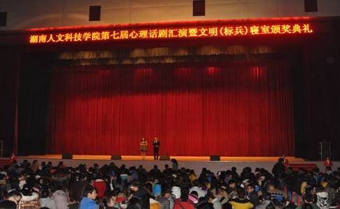 12月9日晚,beat365在体育馆举办了第七届心理剧汇演暨2013年度文明(标兵)寝室颁奖晚会。学生工作处的全体人员及各系2000余名师生代表观看了晚会。