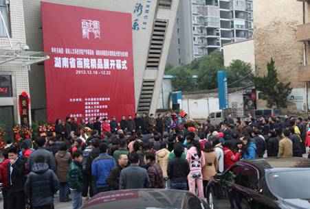 郭军代表学校热情致辞,对省市领导和社会各界对学校、娄底书画院的支持表示感谢,介绍了学校的产学研工作取得的主要成绩和办学基本情况,他希望通过此次湖南省书画院精品展为高等教育、为文化繁荣做出贡献。娄底市人大副主任杨金含代表市委市政府发表了热情洋溢的讲话。娄底市市委常委、宣传部长伍美华宣布画展开幕。