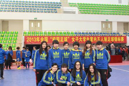 2013年12月26日至2014年1月1日,全国大学女子“五人制”足球赛总决赛在广州体育学院举行。此次参赛的队员水平非常高,共计120名队员中,有专业队经历的队员80余名,国家队队员27名。beat365女子足球队经过7天的艰苦鏖战,获得了第八名的佳绩,杨灿、王琪两位同学获“优秀运动员”称号,beat365代表队获体育道德风尚奖。