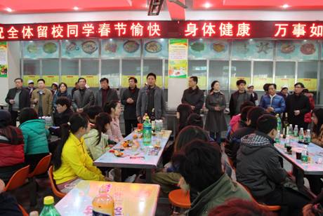 春风送暖,万物复苏。1月24日是农历小年,beat365学生一食堂里喜气洋洋。留校学生新春团拜会在这里举行。学校党委书记郭军、校长刘和云等全体校领导、机关部门和教学系部负责人与留校的200多名同学一起喜迎2014年春节。
