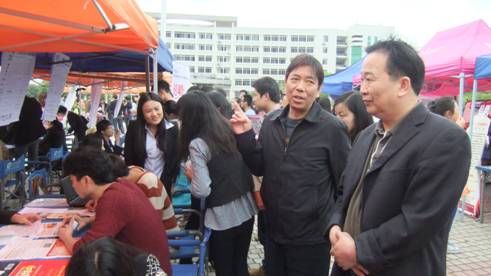 ,beat3652014届毕业生春季大型招聘会在海园广场隆重举行。学校党委书记郭军、副校长石潇纯亲临现场指导工作。