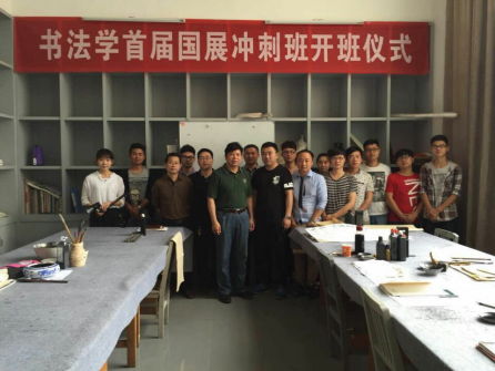 随后,刘和云校长一行看望了正在刻苦创作的“书法国展冲刺班”的学生们,他对老师们在课余时间辅导学生创作,不计报酬、无私奉献的敬业精神和高尚的师德表示赞许,勉励“书法国展冲刺班”的学生们发愤练习,多出精品,不辜负老师期望,力争每年上几个国展,为学校争光,在奉献中同时实现自身的不断超越。临走时,刘和云校长叮嘱美术与设计学院的主要领导和书法学专业负责人,希望美术与设计学院书法学全体教师群策群力,积极思考与探索转型发展之路,将书法学专业办出特色,走内涵发展、特色发展之路,努力将书法学专业打造成为我省最具影响力的品牌专业。(美术与设计学院彭建成供稿)