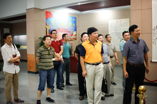 7月4日下午,娄底市委常委、军分区司令员欧友生在校长刘和云,纪委书记杨鑫铨的陪同下来到逸夫楼美术与设计学院二楼展厅,兴致勃勃地观看了学校举办的“永远跟党走”庆祝建党95周年楷书精品展。