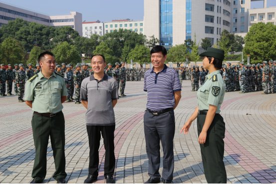 9月22—23日,校领导郭军、刘和云、刘铁峰等人在武保处、宣传部等部门负责人的陪同下,检查了2016级新生军训,并对军训工作做了具体指导。