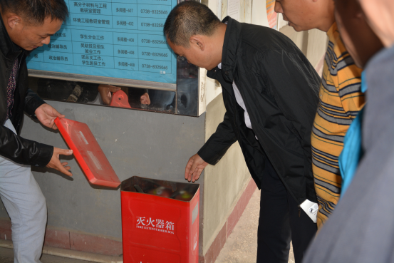 刘铁峰一行先来到播馨楼、百全楼等教学楼对学院假期值班安排情况、学生安全教育情况、安全隐患排查情况等进行了询问检查。再来到视频监控中心与消防控制室,查看了各项设施设备能否正常平稳运行,叮嘱工作人员一定要坚守岗位、尽职尽责的完成工作;随后又去往学生食堂、超市对环境卫生、食品安全进行了详细的检查,要求工作人员做好后勤服务,确保食品安全。最后来到材料与环境工程学院对各个实验室进行了全面的检查,并与正在做实验的师生进行了亲切的交流。