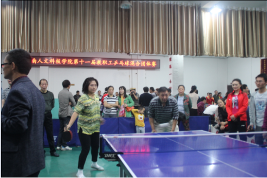 本次团体赛按男子单打、女子单打、男女混合双打、男子双打、男女混合双打的比赛顺序进行。经过紧张激烈的角逐,商学院获得本次比赛的第一名,体育学院分工会获得第二名,马克思主义分工会、机关工会一小组联队获得第三名,信息学院分工会获得第四名,能源与机电工程学院分工会获得第五名、外国语学院获得第六名,机关工会三小组、七小组、离退办联队获得第七名,音乐舞蹈学院分工会获得第八名。