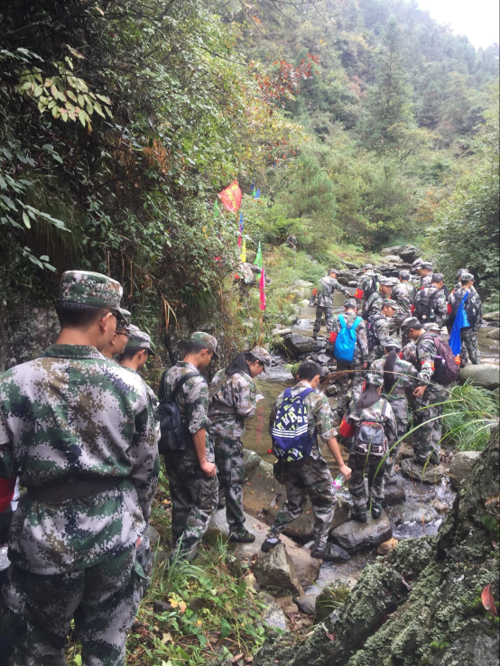 自训教官们爬山涉水踏着红军的足迹前进