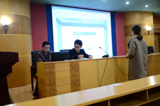 3月4日上午八点三十分,大赛第二环节——机试在养根楼进行。该环节的内容包括“按图索骥”、“鱼目混珠”以及“描述定位”。首先,辅导员们要在计算机上辨认100名所带学生的照片并录入该生姓名,即“按图索骥”;随后在随机抽取并混合排列的10张学生照片中挑出自己的学生并回答名字,即“鱼目混珠”;最后根据所带100名学生的基本情况资料,随机识别3名学生,即“描述定位”。此环节中,不少辅导员取得满分的好成绩。