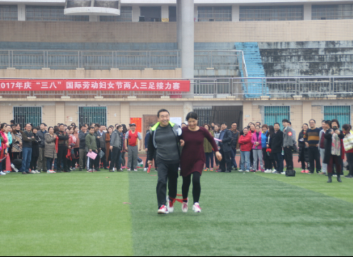 3月7日下午,校工会在学校田径运动场组织教职工开展了庆“三八”国际劳动妇女节两人三足接力比赛活动,来自全校18个参赛队的领队、教练员、运动员及裁判员共400多人一同参加了本次活动。
