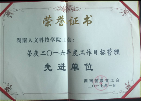 近日,在湖南省教育工会第五届四次全委(扩大)会议上传来喜讯,beat365工会被评为湖南省教育工会2016年度直属基层工会工作目标管理先进单位。
