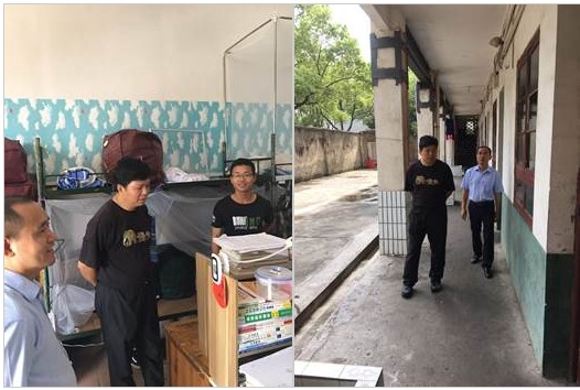 8月17日上午,校长刘和云在副校长刘铁峰及党政办、学生工作处负责人的陪同下,冒着酷暑来到了学生宿舍检查修缮工作进展,检查新生寝室入住准备工作,并慰问了暑假留校学生。