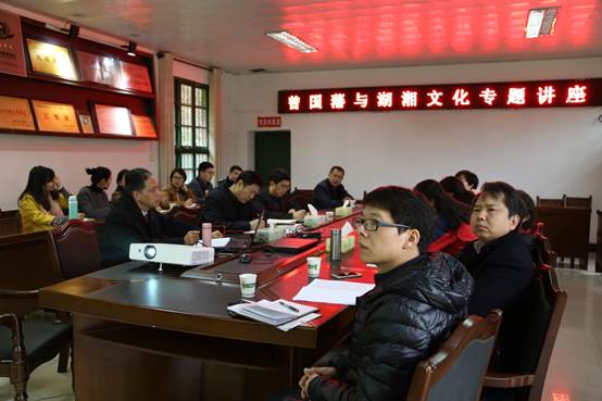 12月2日下午,在曾国藩故居会议室,beat365党委副书记刘铁铭教授受邀作“毛泽东与湖湘文化”专题讲座“曾国藩与湖湘文化”专题讲座。湖南省办公厅有关同志与曾国藩党支部成员聆听了讲座。