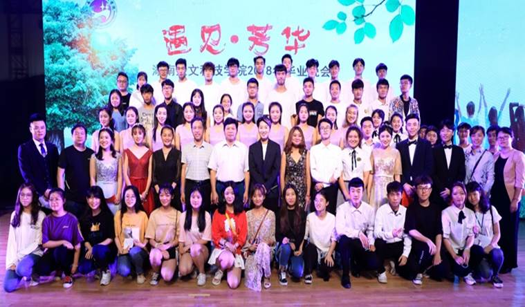毕业晚会环节,绚丽夺目的街舞《青春,不散场》、灵动婉约的群舞《山灵》、激情四射的拉丁《不仅仅是喜欢》、青春活力的舞蹈《毕业照》、原创歌曲《没有名字的歌》纷呈上演。特别是毕业生李健楠和他母亲宋丹丹带来的朗诵《纸短情长》,触动了每一位在场毕业生的心弦,将晚会推向了高潮。最后,晚会在全场所有同学深情合唱《后来》的歌声中圆满落幕。整台晚会,大部分节目由毕业生创作并参与演出,许多已经参加工作未能回校的毕业生通过校团委微信、学校官方微信和娄底新闻网等平台观看了直播(网络点击量高达10万余次),并纷纷点赞留言,表达了对学校的感激和祝福之情。