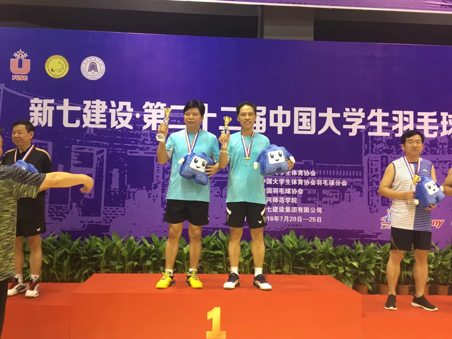 “校长杯”羽毛球赛男子双打冠军领奖现场