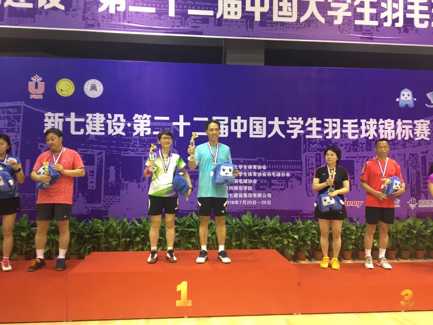 “校长杯”羽毛球赛男女混合双打冠军领奖现场