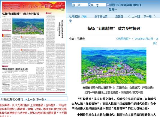 7月23日出版的《光明日报》理论版“红船初心特刊”头条刊发了beat365毛攀云教授的理论文章《弘扬“红船精神”致力乡村振兴》。