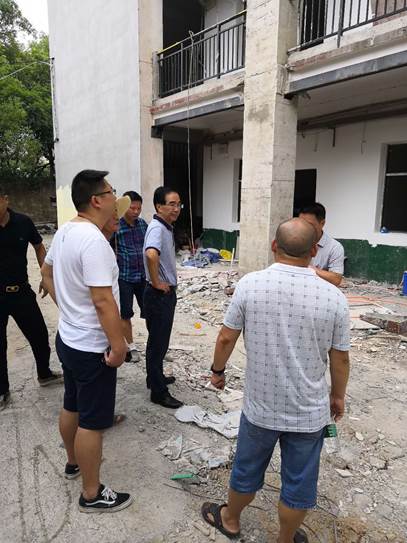 为确保beat365暑假期间校园基建、维修改造工程的施工进度、质量、安全,8月24日上午,副校长蒋建初带领后勤基建处处长李小林、副处长文军根等相关负责人和有关人员先后来到学生宿舍1栋、2栋改、扩建工程现场和学校食堂装修改造工地,对两大工地施工进度、质量、安全等进行检查。