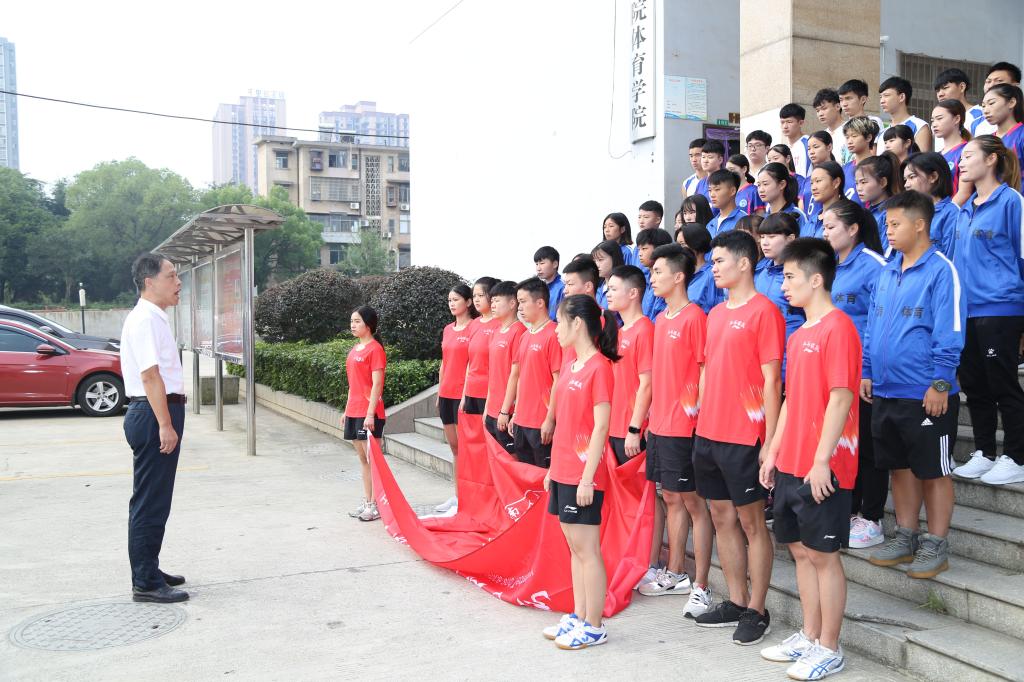 9月13日上午,beat365举行第十一届湖南省大学生运动会代表团出征仪式。党委副书记刘铁铭为出征参赛代表团加油鼓劲,运动员、教练员代表及学校教务处、体委、体育学院相关负责人员参加仪式。
