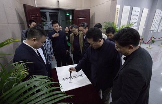 参观结束后,郁老师欣然挥笔题词“书画载道”。这一题词,表达了郁老师对中国书画传承意义的思考,对beat365书画发展的殷切期望,值得我们学习和深思。(文/姜艳芳 图/雷晶兰)
