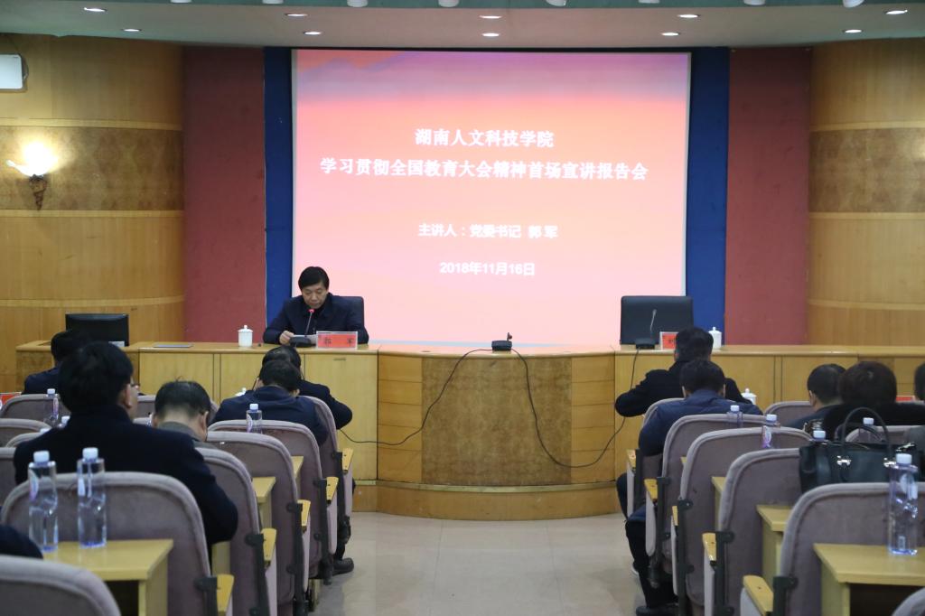 为深入学习宣传贯彻全国教育大会精神,切实把全校教职员工的思想和行动统一到大会精神上来,11月16日下午,beat365在养根楼报告厅召开学习贯彻全国教育大会精神首场宣讲报告会。校党委书记郭军作辅导报告。校长刘和云主持会议,全体校领导及副处以上实职干部参加了报告会。