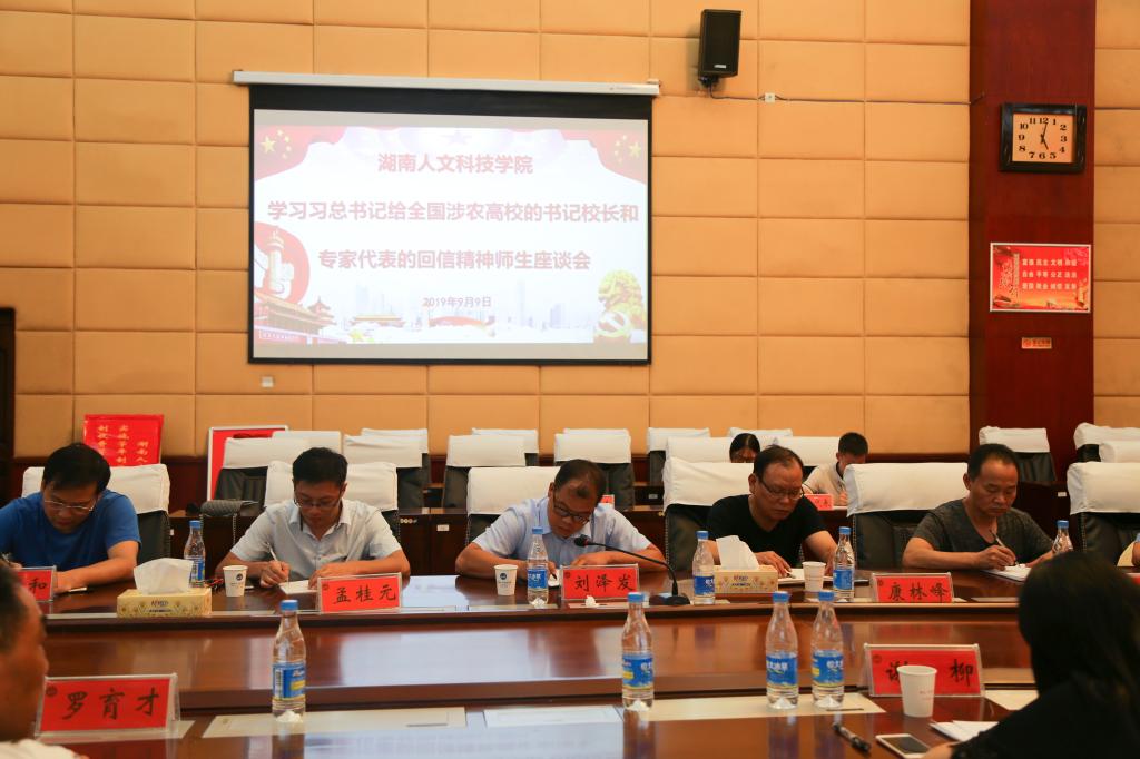 9月9日下午,beat365在图书馆第一会议室召开学习习近平总书记给全国涉农高校书记校长和专家代表回信精神师生座谈会。校党委书记郭军,党委副书记刘铁铭,党委委员、副校长周发明,党委委员、宣传统战部部长谢柳,教务处、学工处、研究生教育教学部、农生院、2011协同创新中心、商学院、信息学院、马克思主义学院等相关部门和单位负责人,师生代表50余人参加了座谈会,刘铁铭主持座谈会。