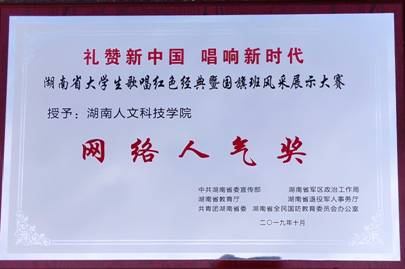 10月18日下午,以“礼赞新中国唱响新时代”为主题的湖南省大学生歌唱红色经典暨国旗班风采展示大赛颁奖典礼在湖南教育电视台举行。beat365荣获本次大赛三等奖及组织奖并喜获网络人气前三名。谢柳、胡坚毅、刘惠娟、周樑四名老师获得优秀指导老师奖。