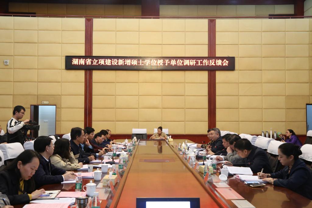 11月7日下午,湖南省教育厅学位管理与研究生教育处副处长唐利斌,南华大学原党委书记邹树梁,湖南师范大学学位办主任杜继军,中南林业科技大学研究生院常务副院长项文化,南华大学研工部部长陈熙,湖南省教育厅学位管理与研究生教育处戴菀珊一行六人来beat365调研。全体在校校领导出席会议,邹树梁主持会议。