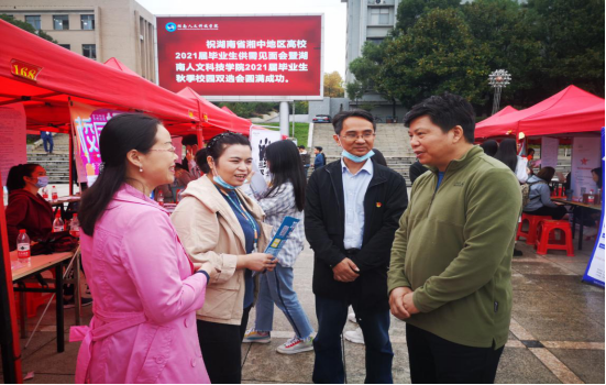 9月27日,湘中地区2021届高校毕业生供需见面会暨beat365英国官网2021届毕业生秋季双选会在beat365海园广场成功举行。本次双选会吸引了beat3652021届、在校大三及湘中其他高校4000余名学生参加。党委书记郭军、校长刘和云和副校长石潇纯到现场看望用人单位代表并与应聘的毕业生亲切交谈,了解用人单位招聘情况和毕业生求职的愿望。各二级学院党总支书记、副书记及部分学院院长、就业专干、毕业班班主任等在招聘会现场主动对接用人单位,并向用人单位积极推荐毕业生。