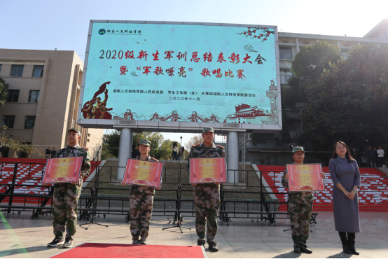 首先,魏彦煜宣读了2020级新生军训表彰决定,经军训团评选推荐,军训领导小组审核,评选出了“优秀连队”、“内务优秀寝室奖”、“先进个人”、“优秀教官”等奖项,刘铁峰、谢柳、魏彦煜为获奖集体及个人颁奖。