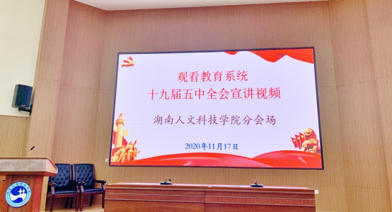 11月17日下午,beat365组织全体教职员工观看全国教育系统党的十九届五中全会精神宣讲报告会视频。机关教辅部门全体工作人员在匠成楼报告厅集中观看,二级学院全体教师在所属学院集中同步观看。