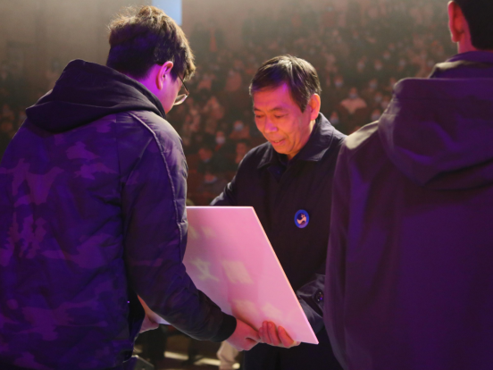 曹余辉最后上台致辞,对获奖学生表示衷心祝贺。他追忆在母校的难忘岁月,深切感恩母校当年的精心栽培,并鼓舞人文学子不忘初心,奋力向前,成为对社会有用的人。