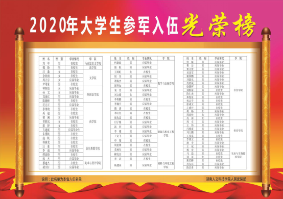 2020年学校及省内入伍学生光荣榜
