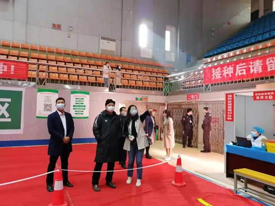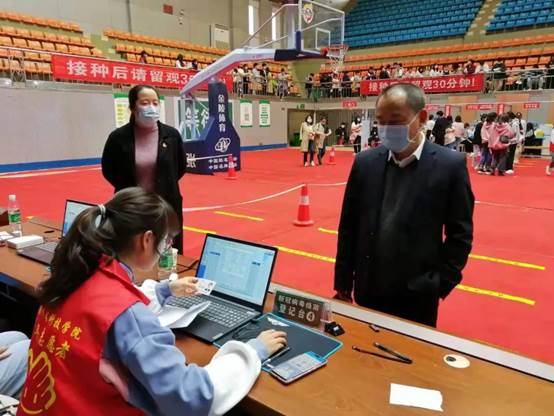 学校党委书记刘和云,副校长刘铁峰、曹鑫等校领导来到疫苗接种现场检查指导工作。